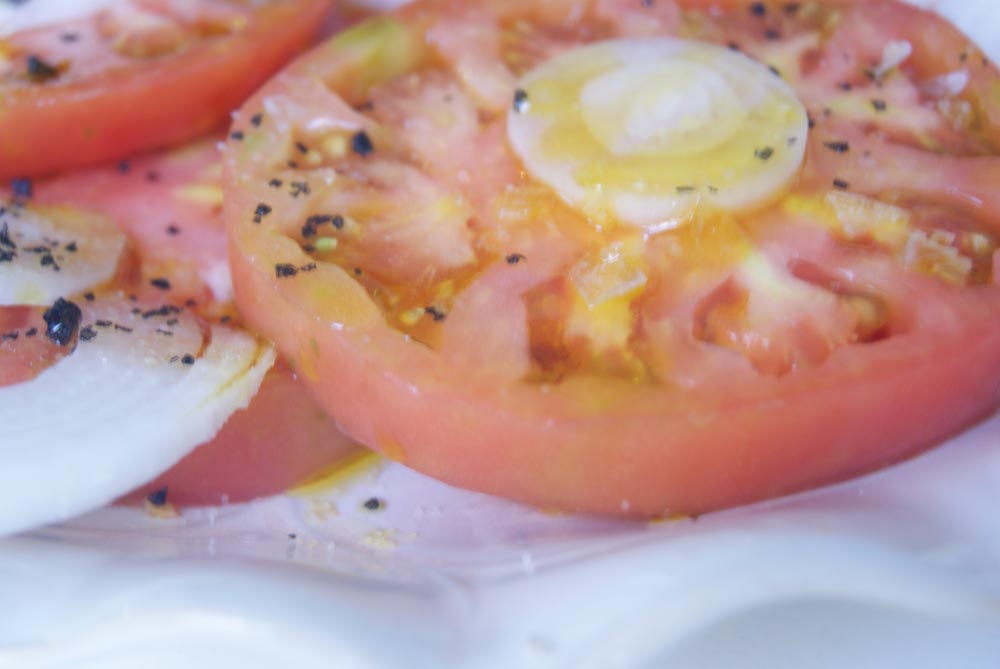 Al abrir la caja me encontré con unos tomates espectaculares de forma y tamaño. La verdad es que ese mismo día los disfruté de la manera más sencilla que se me ocurrió: en rodajas y con aceite de oliva.